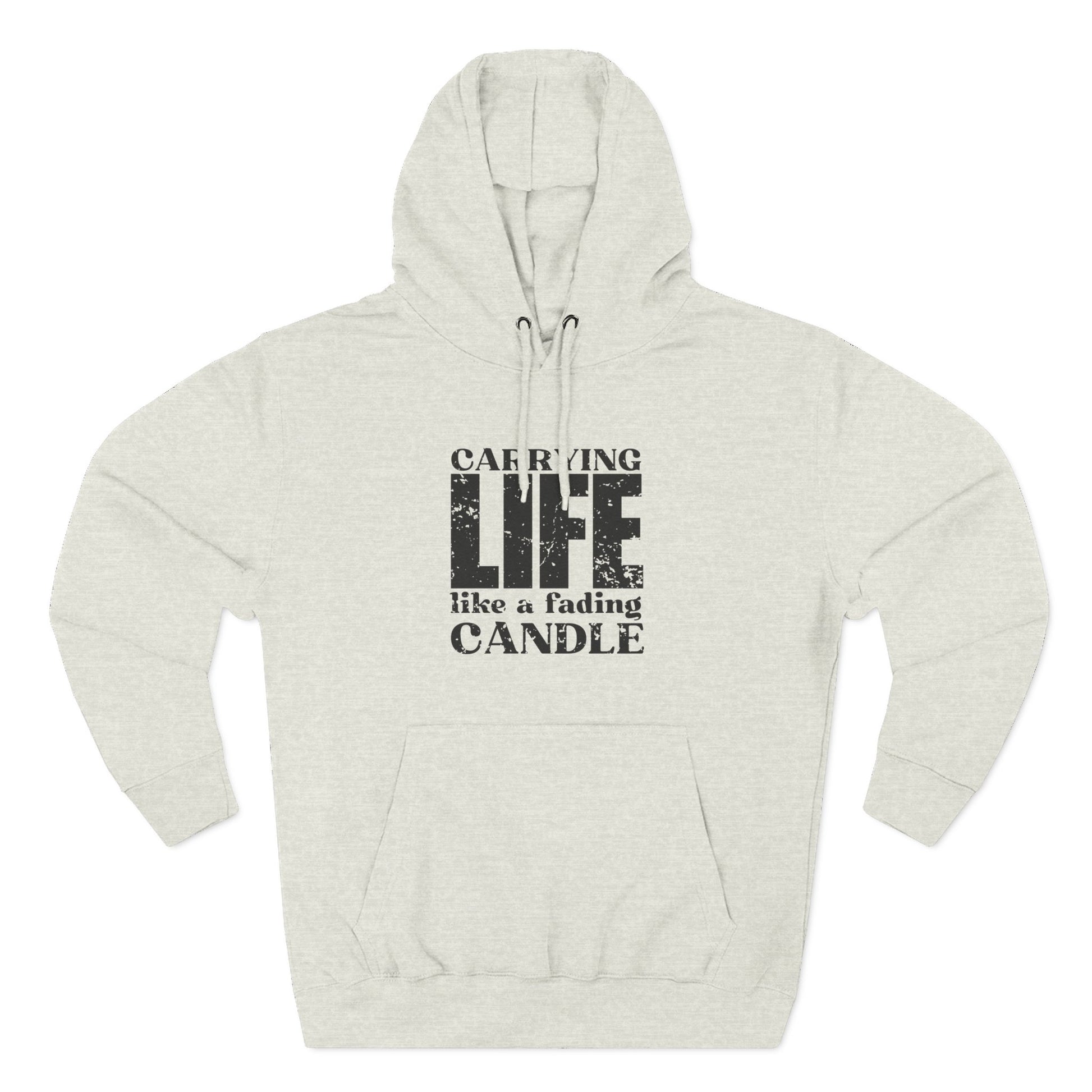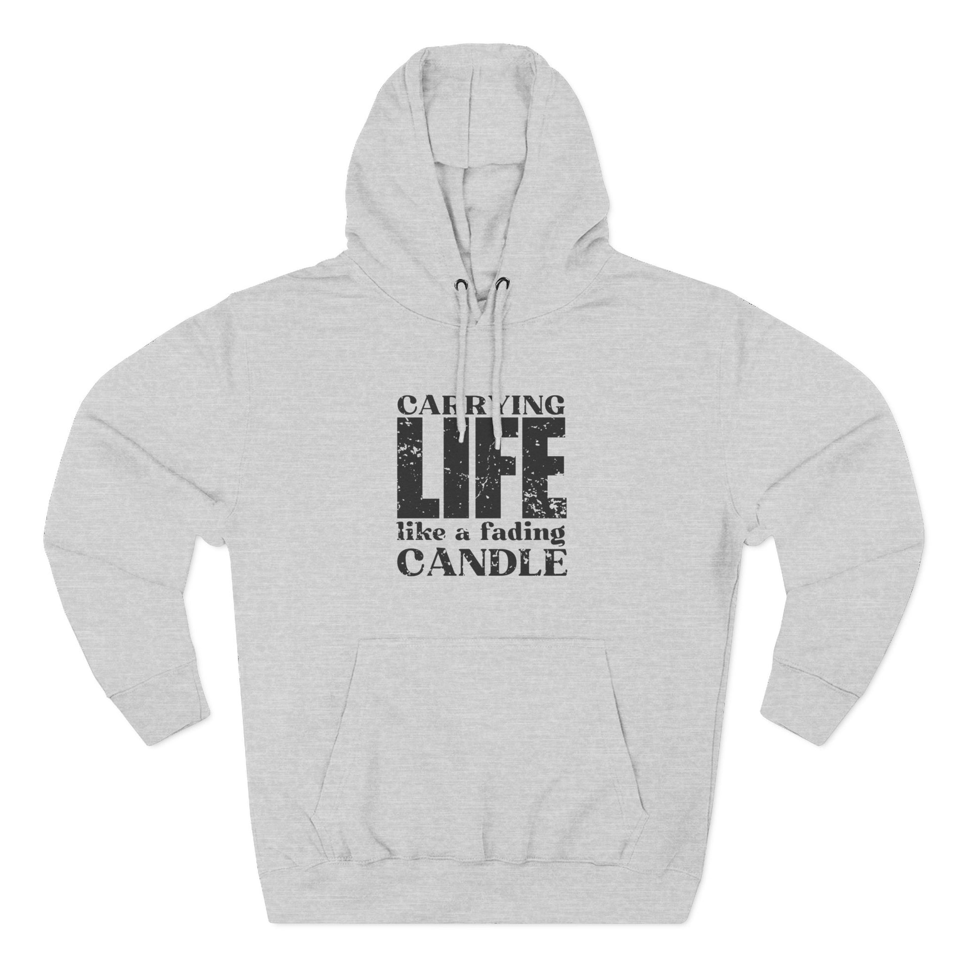 'carrying life like a fading candle' Three-Panel Fleece Hoodie - Unisex - Distressed Font.