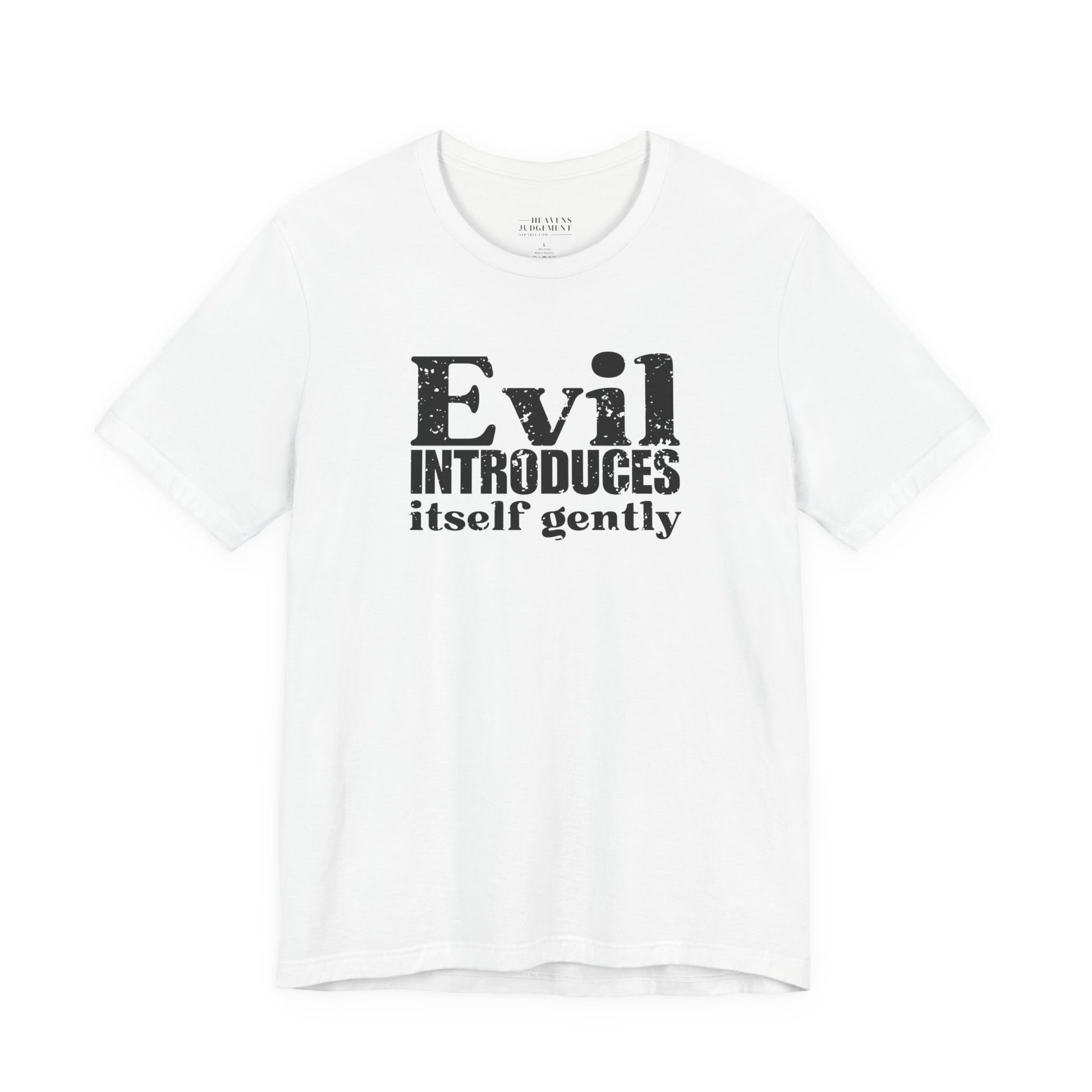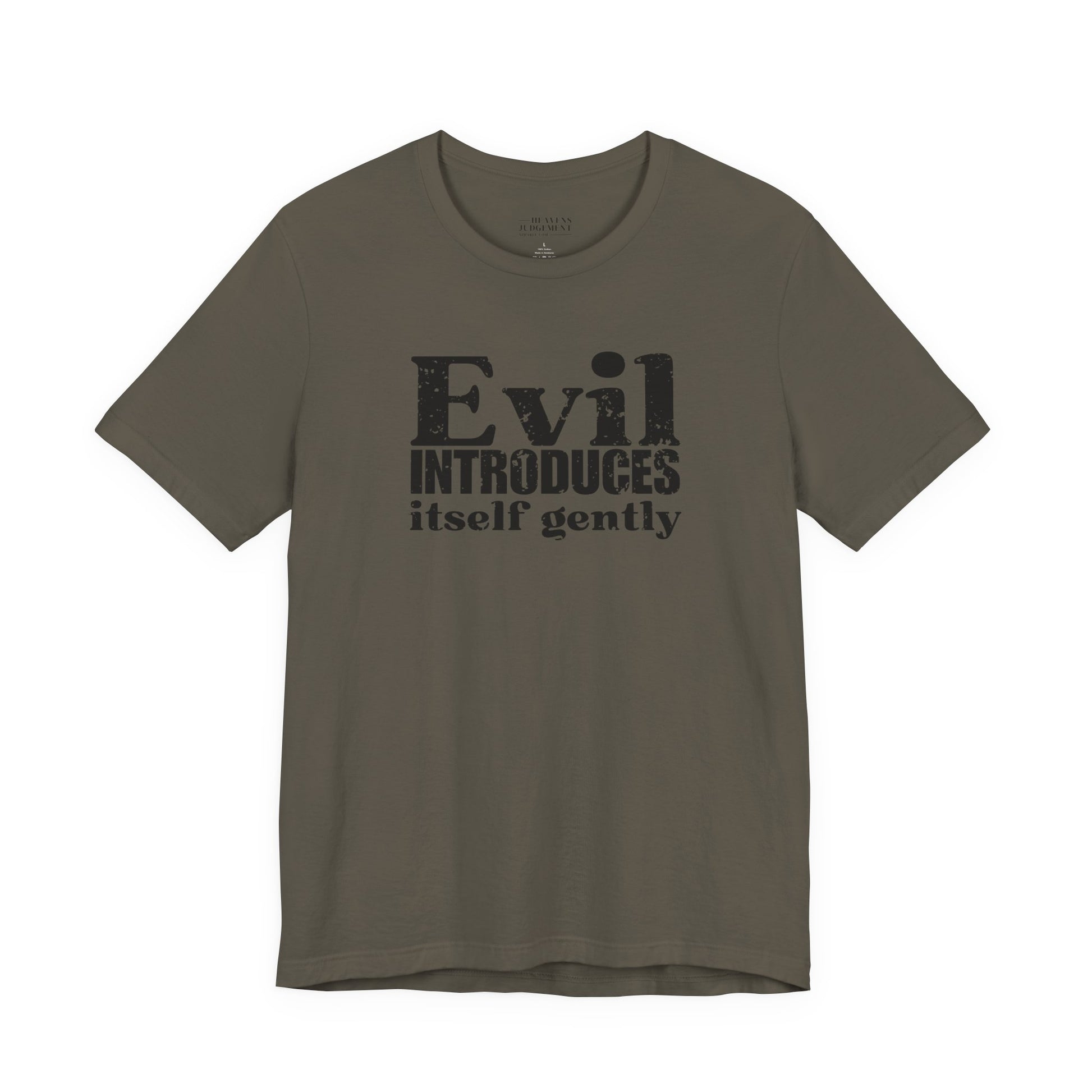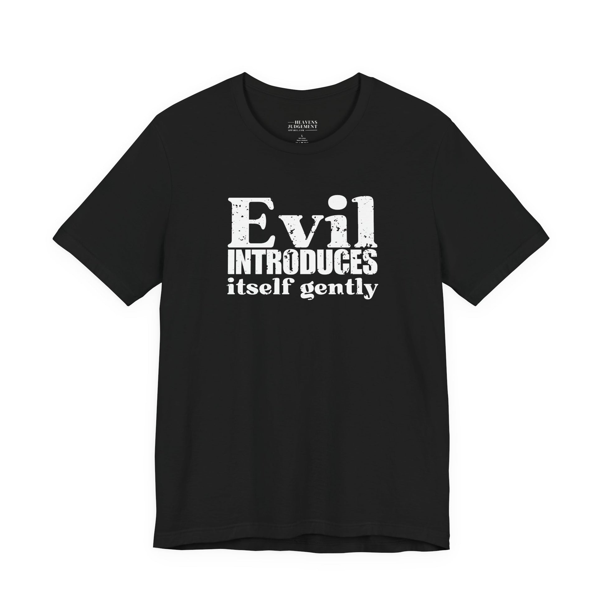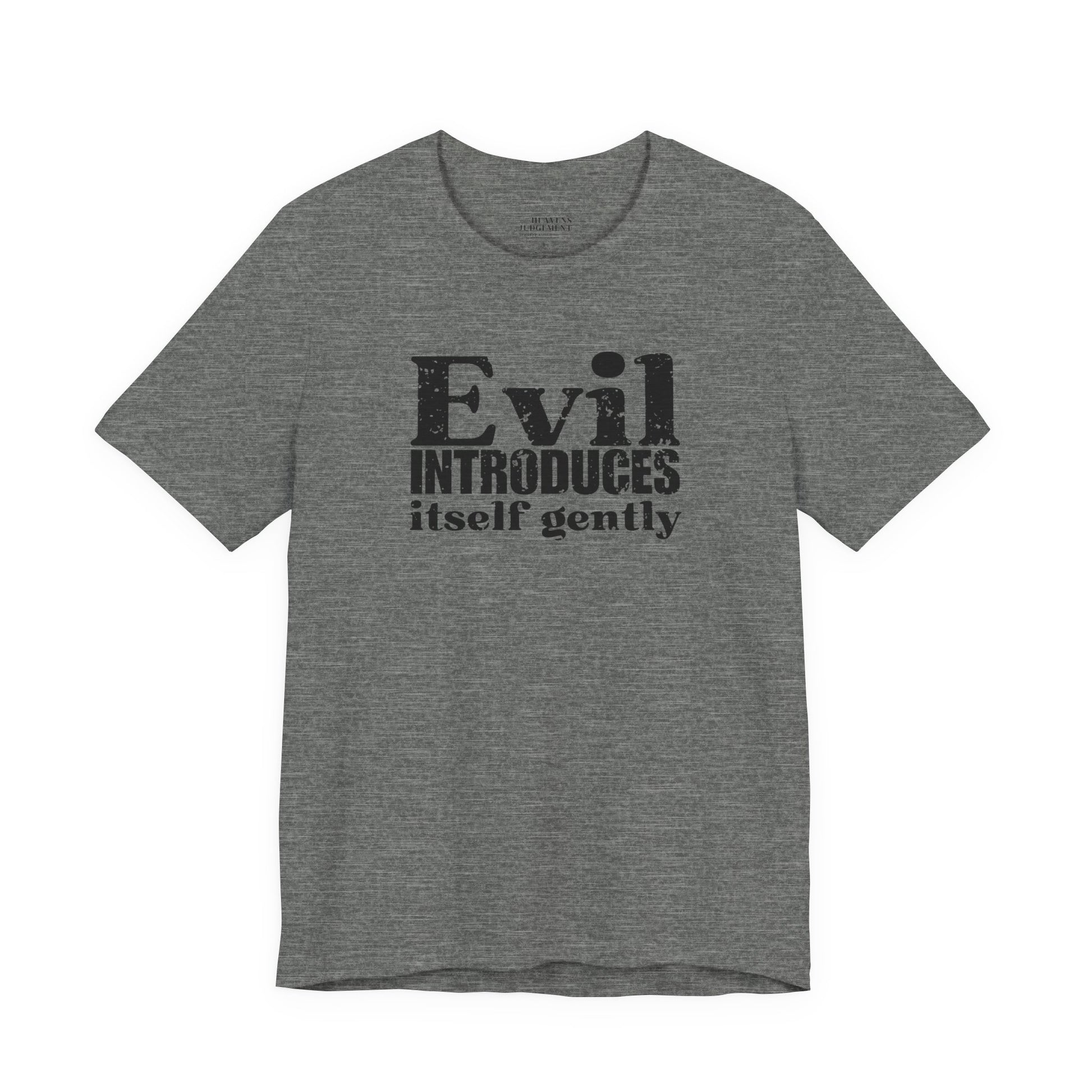 'Evil introduces itself gently' T-Shirt - Unisex - Distressed Font.