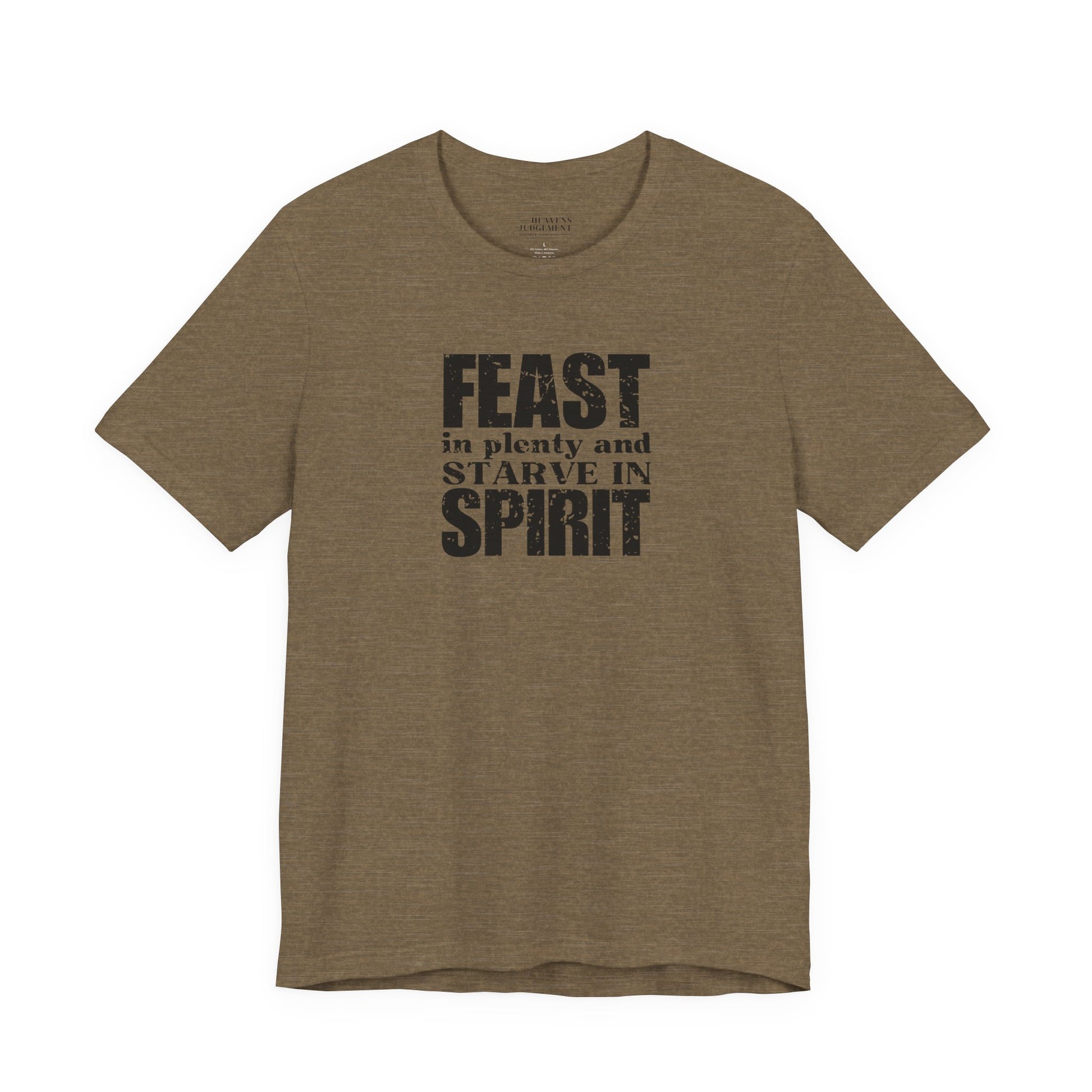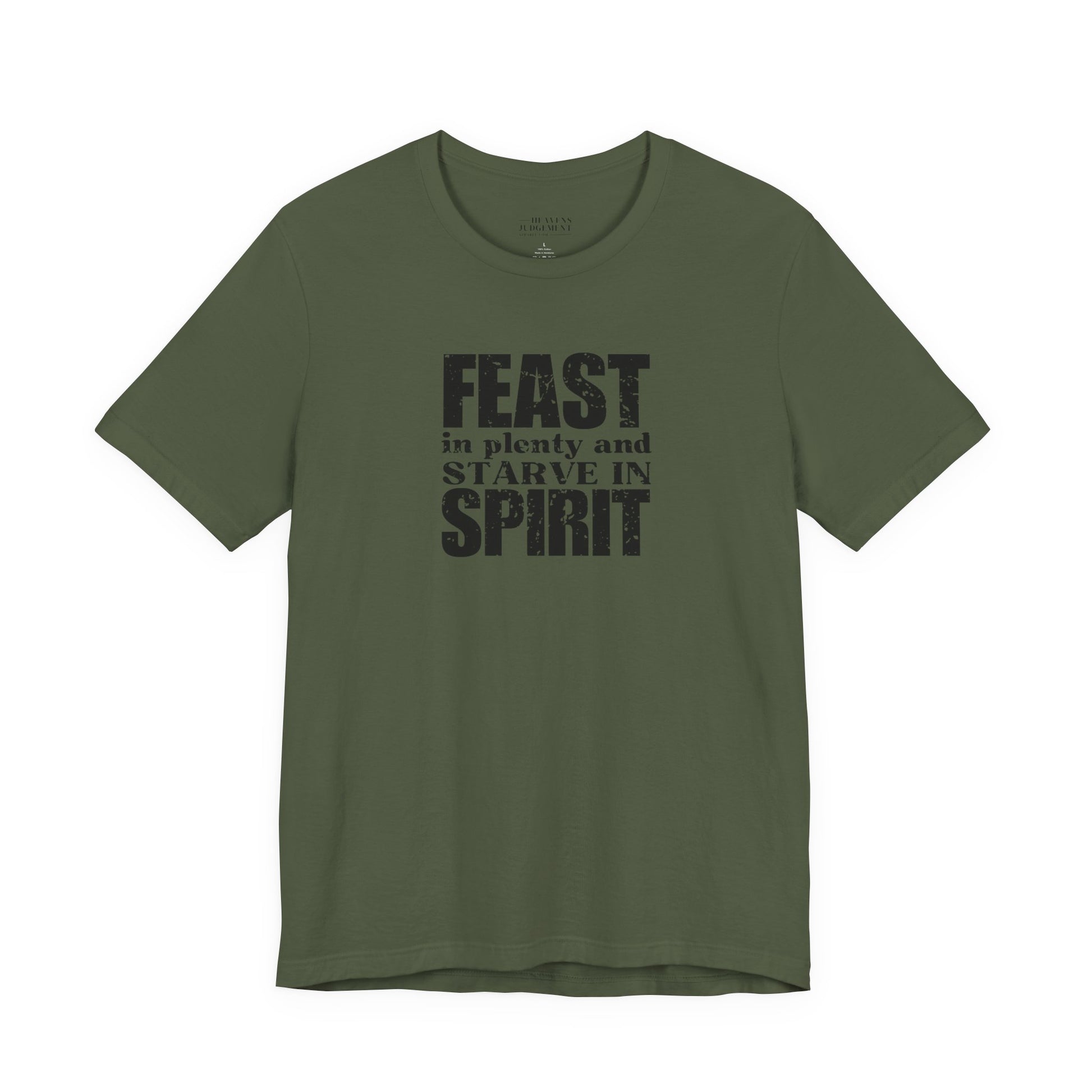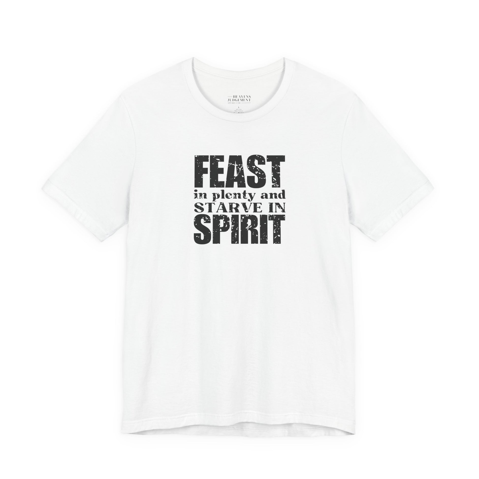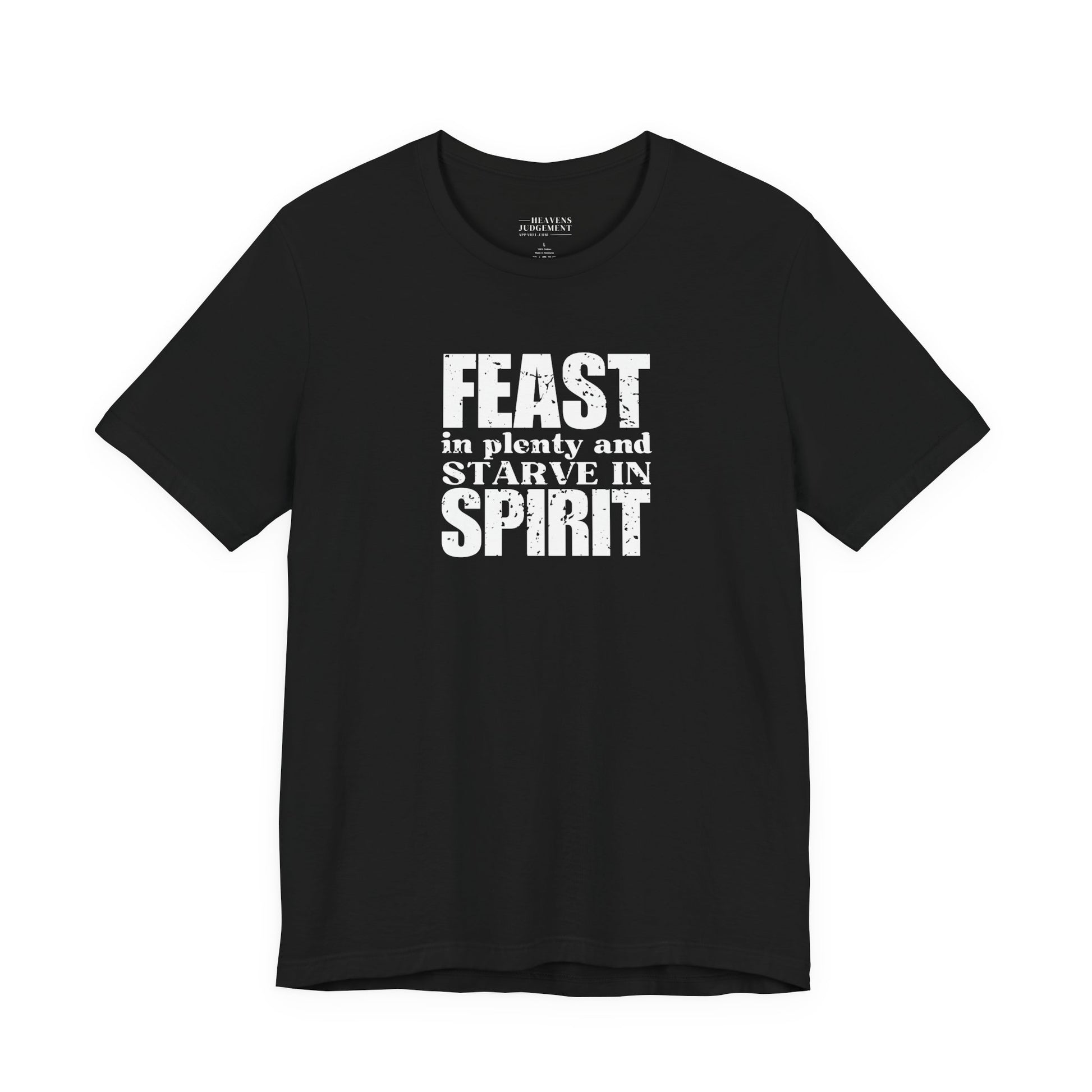 'Feast in plenty and starve in spirit' T-Shirt - Unisex - Distressed Font.