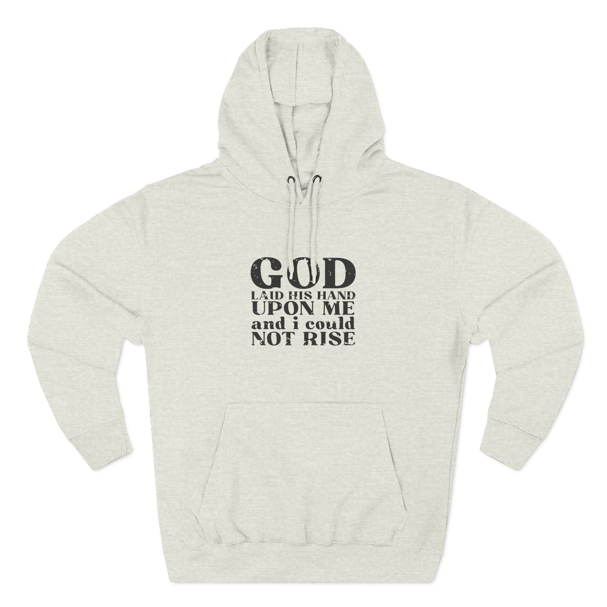 'God laid His hand upon me, and I could not rise' Three-Panel Fleece Hoodie - Unisex - Distressed Font.