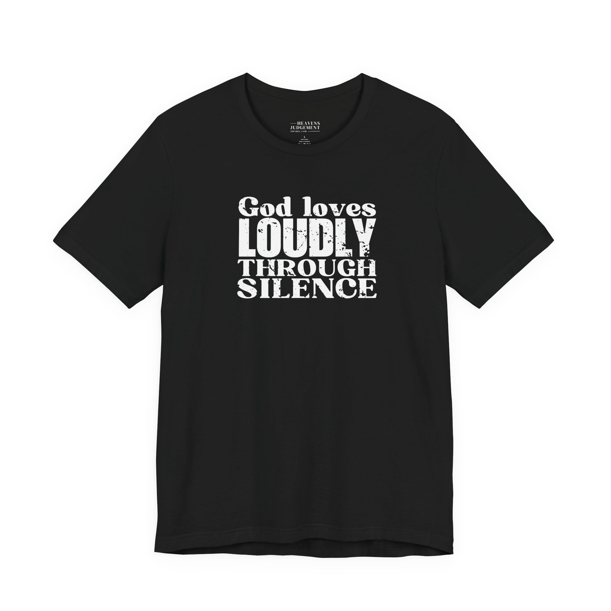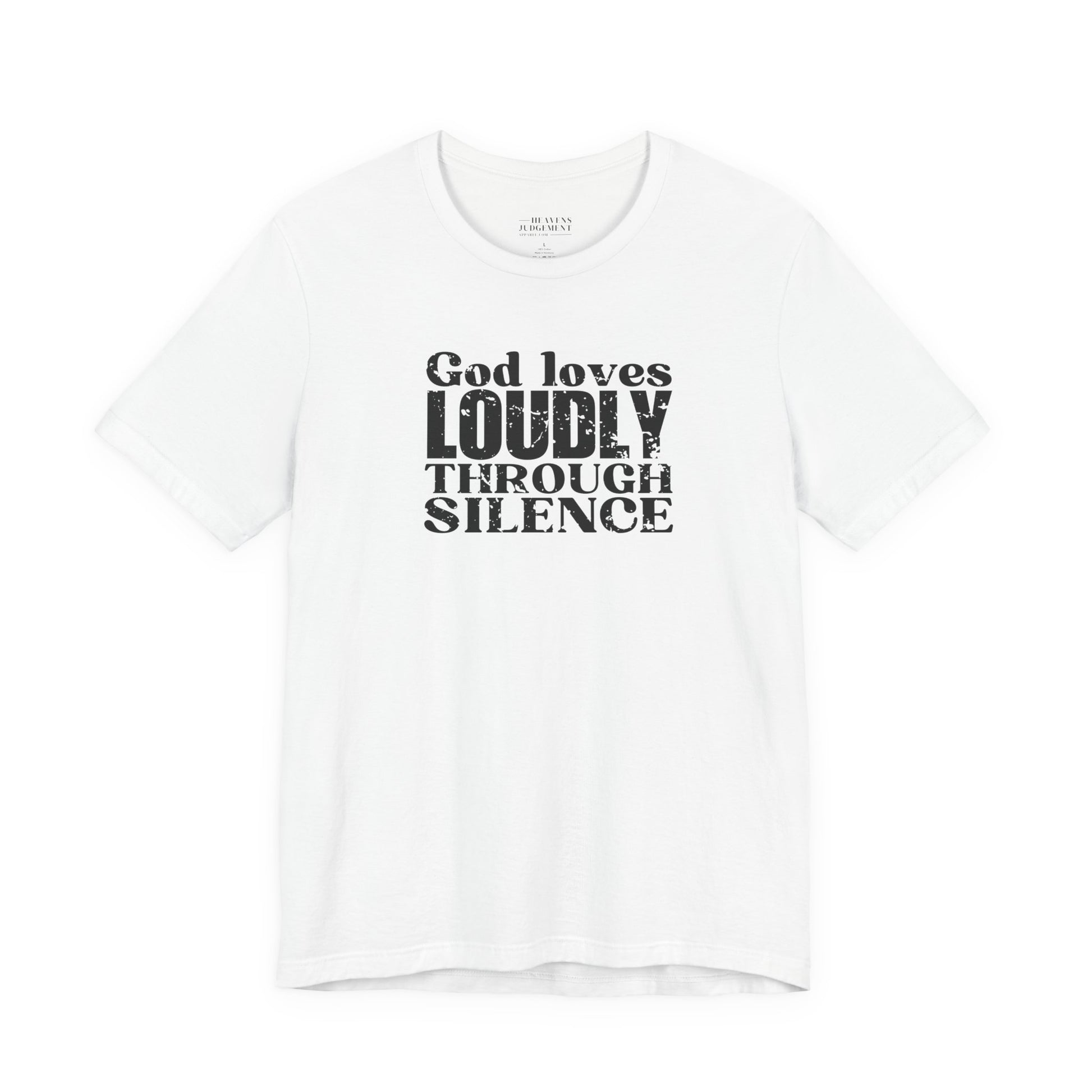 'God loves loudly through silence' T-Shirt - Unisex - Distressed Font.