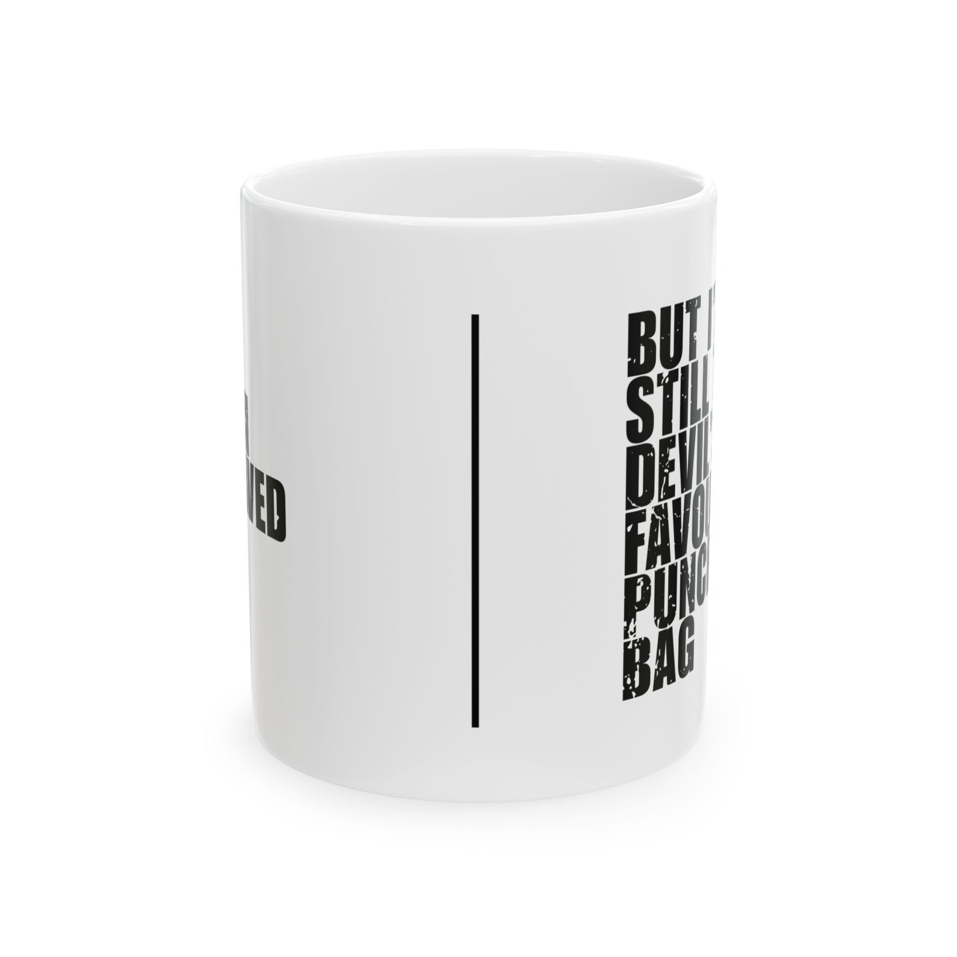 'I’m Saved, But I’m Still the Devil’s Favourite Punching Bag' Mug - (11oz, 15oz) - White