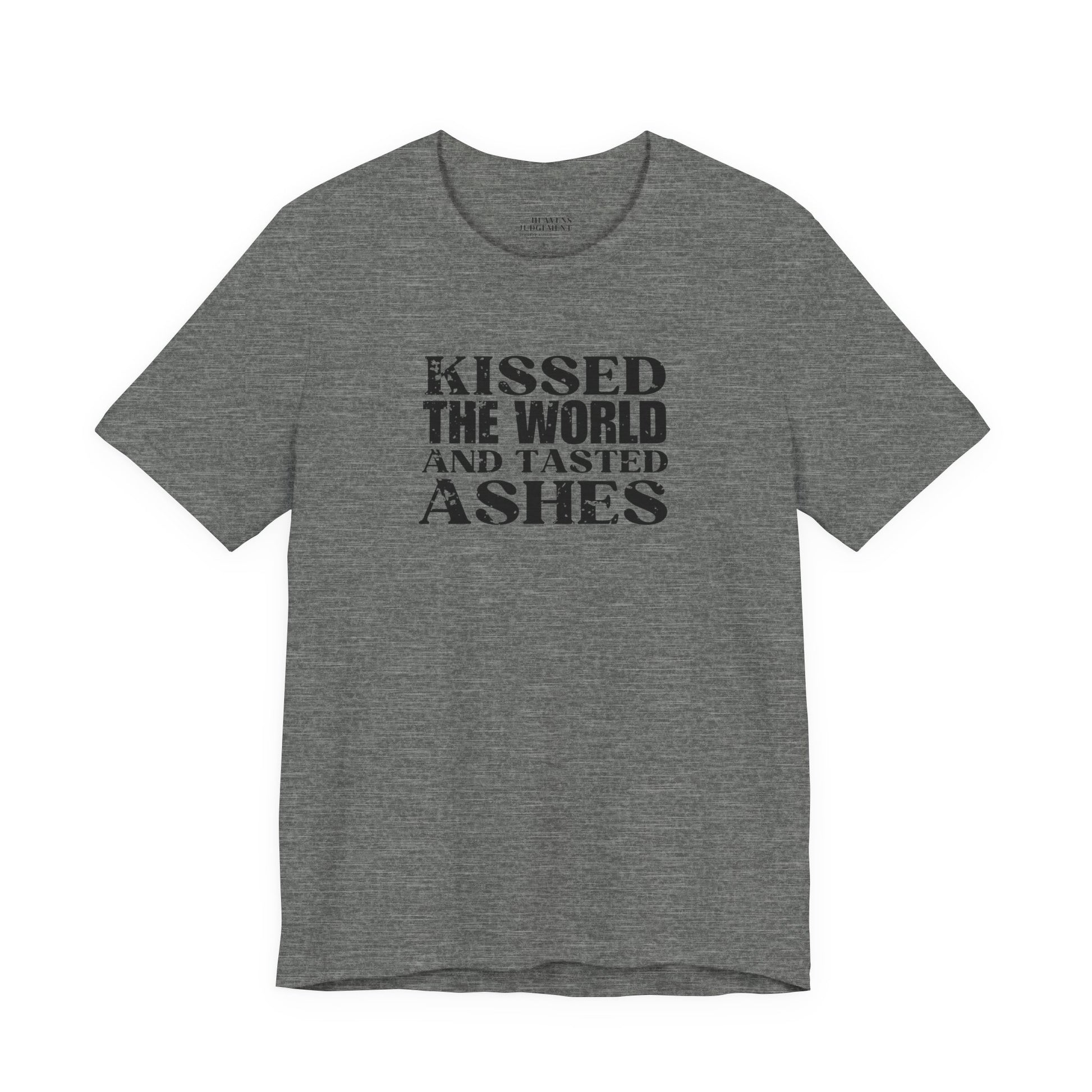 'Kissed the world and tasted ashes' T-Shirt - Unisex - Distressed Font.