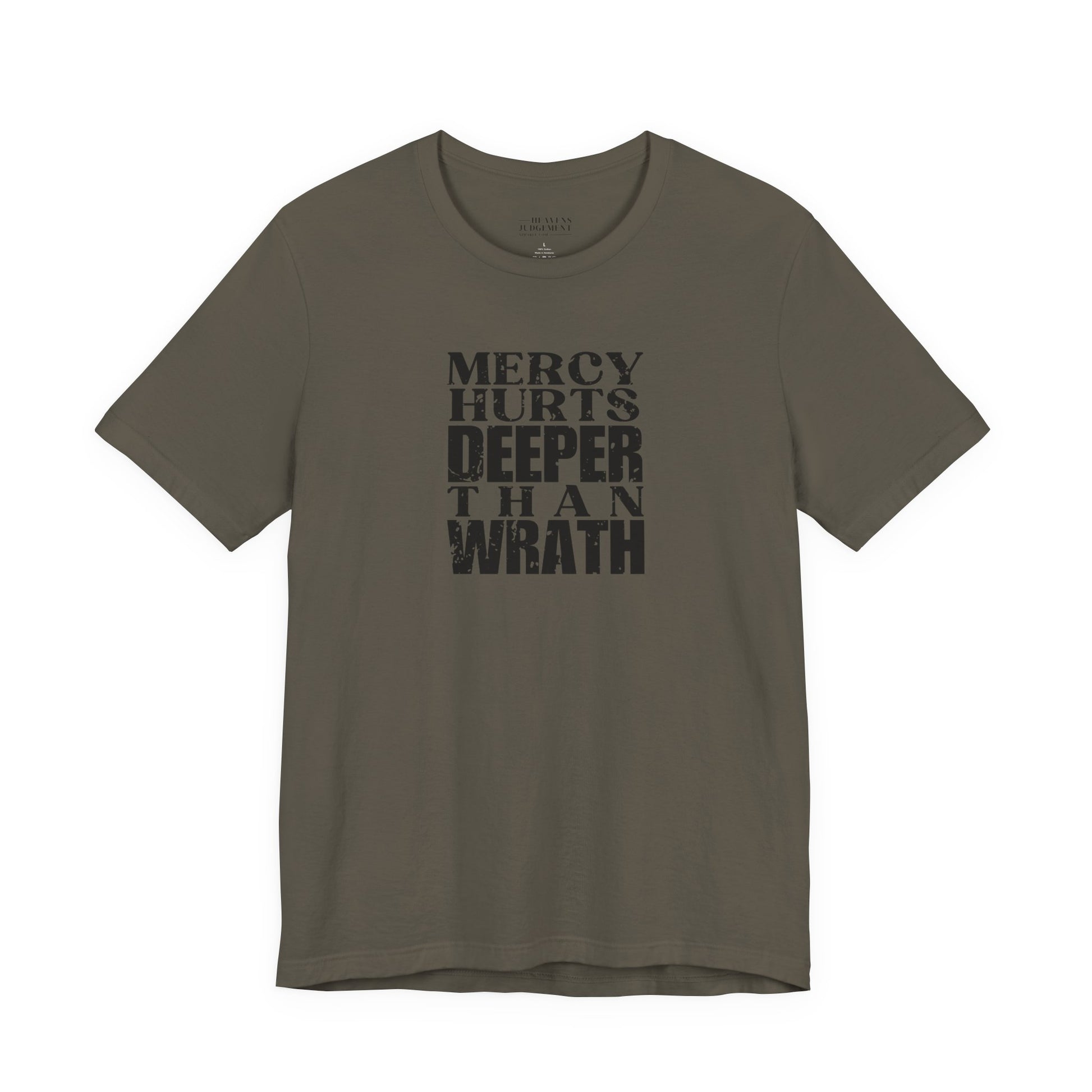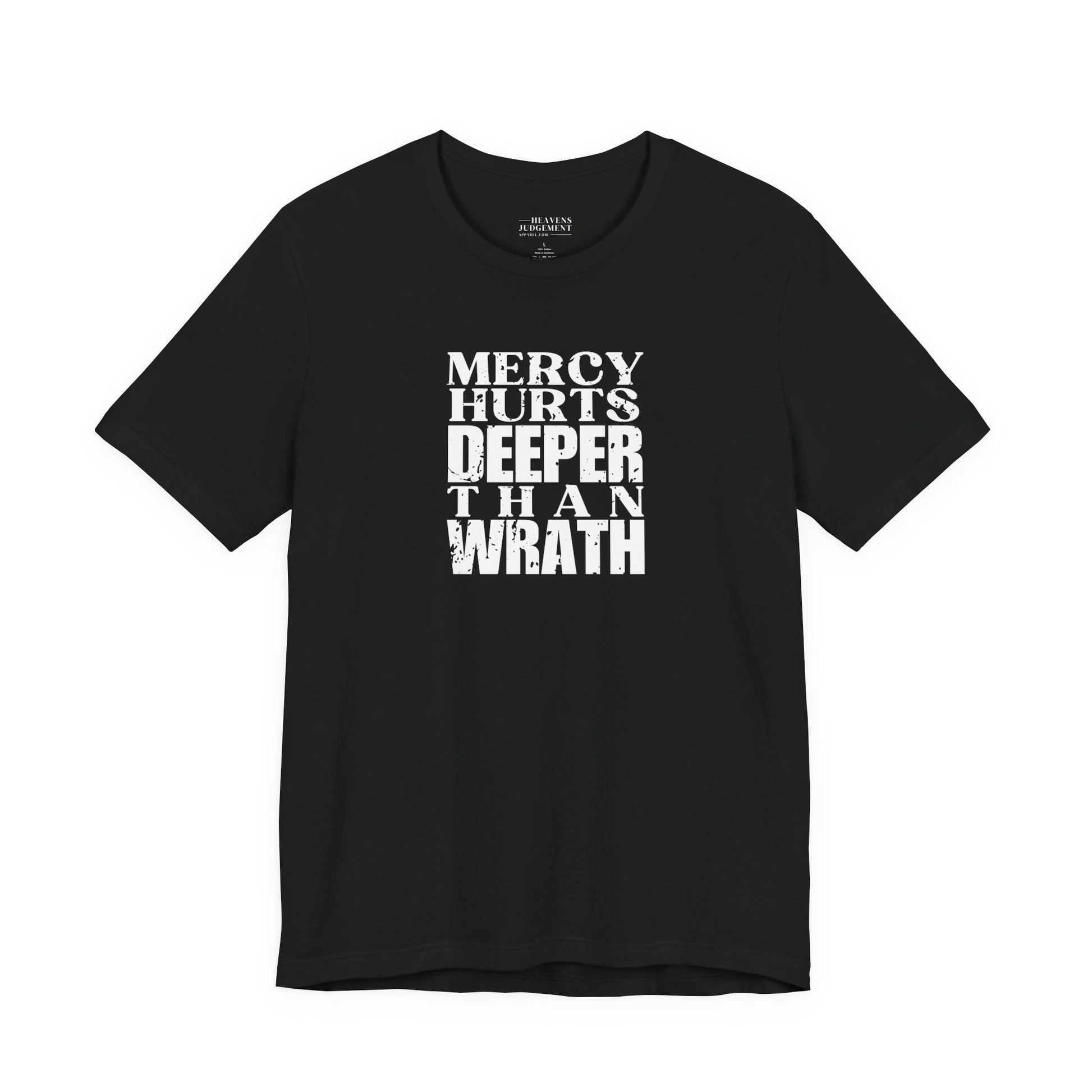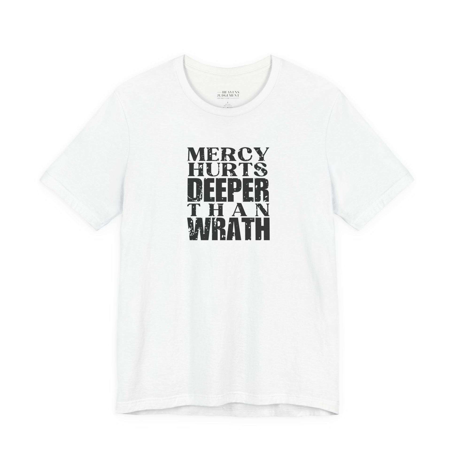 'Mercy hurts deeper than wrath' T-Shirt - Unisex - Distressed Font.