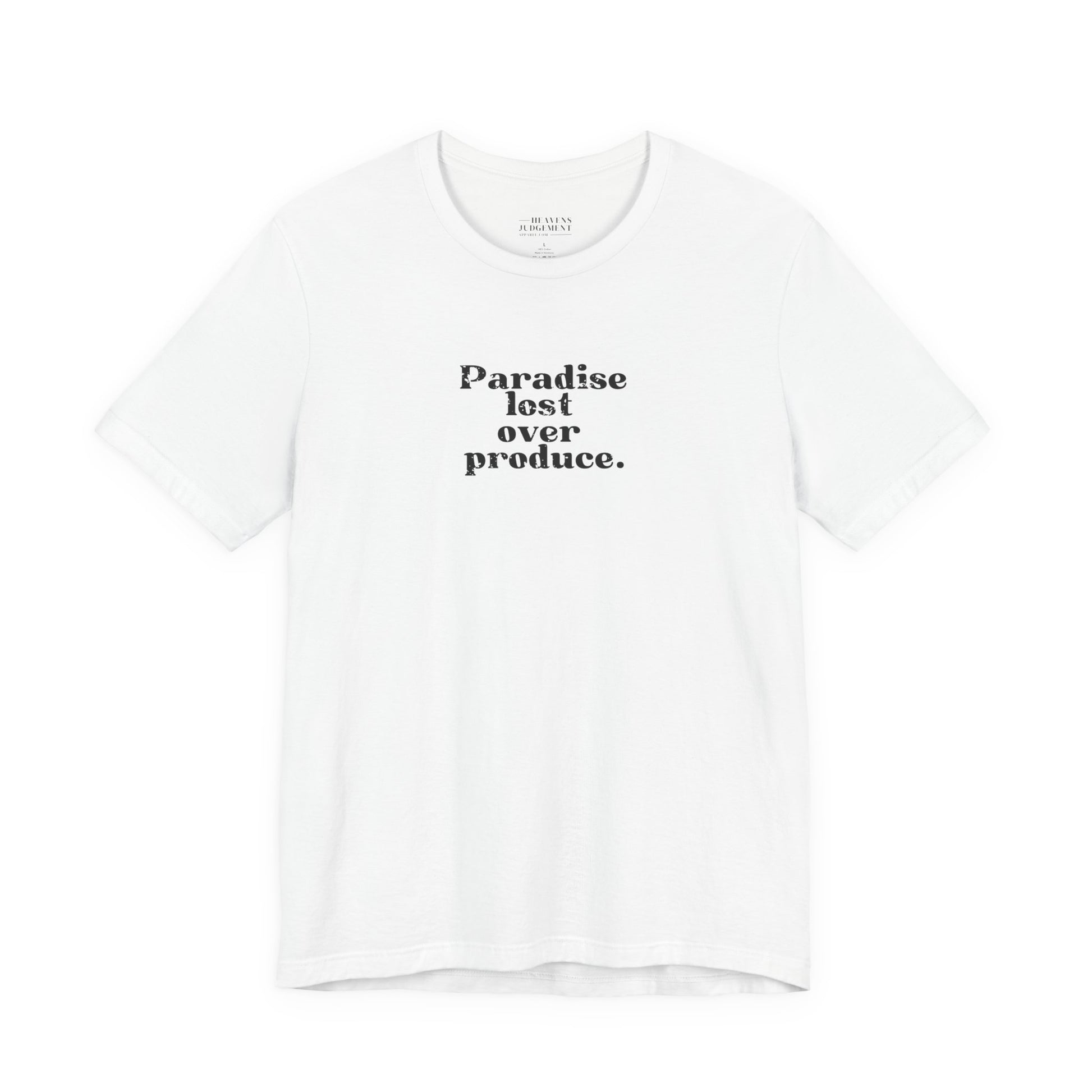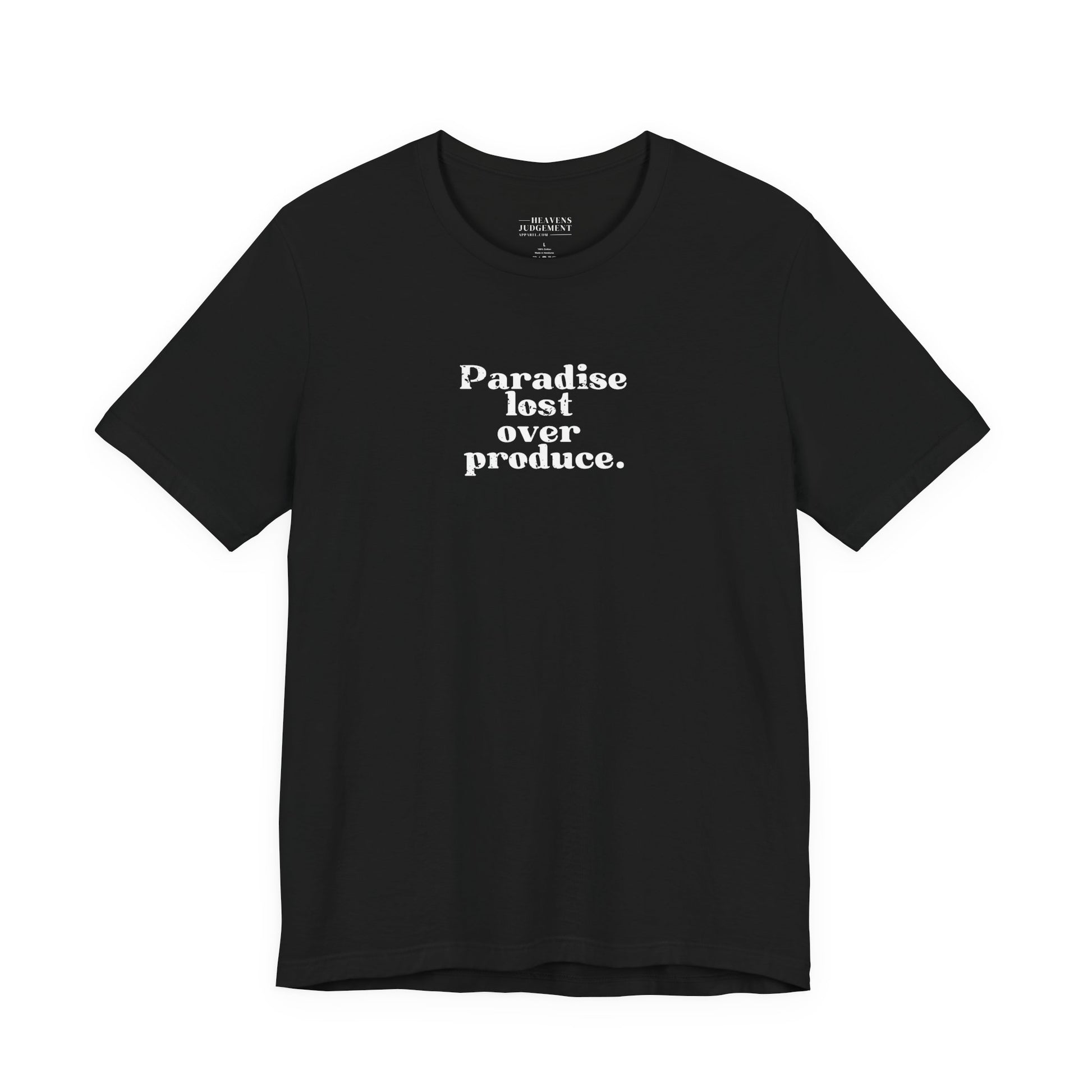 'Paradise lost over produce' T-Shirt - Unisex - Distressed Font.