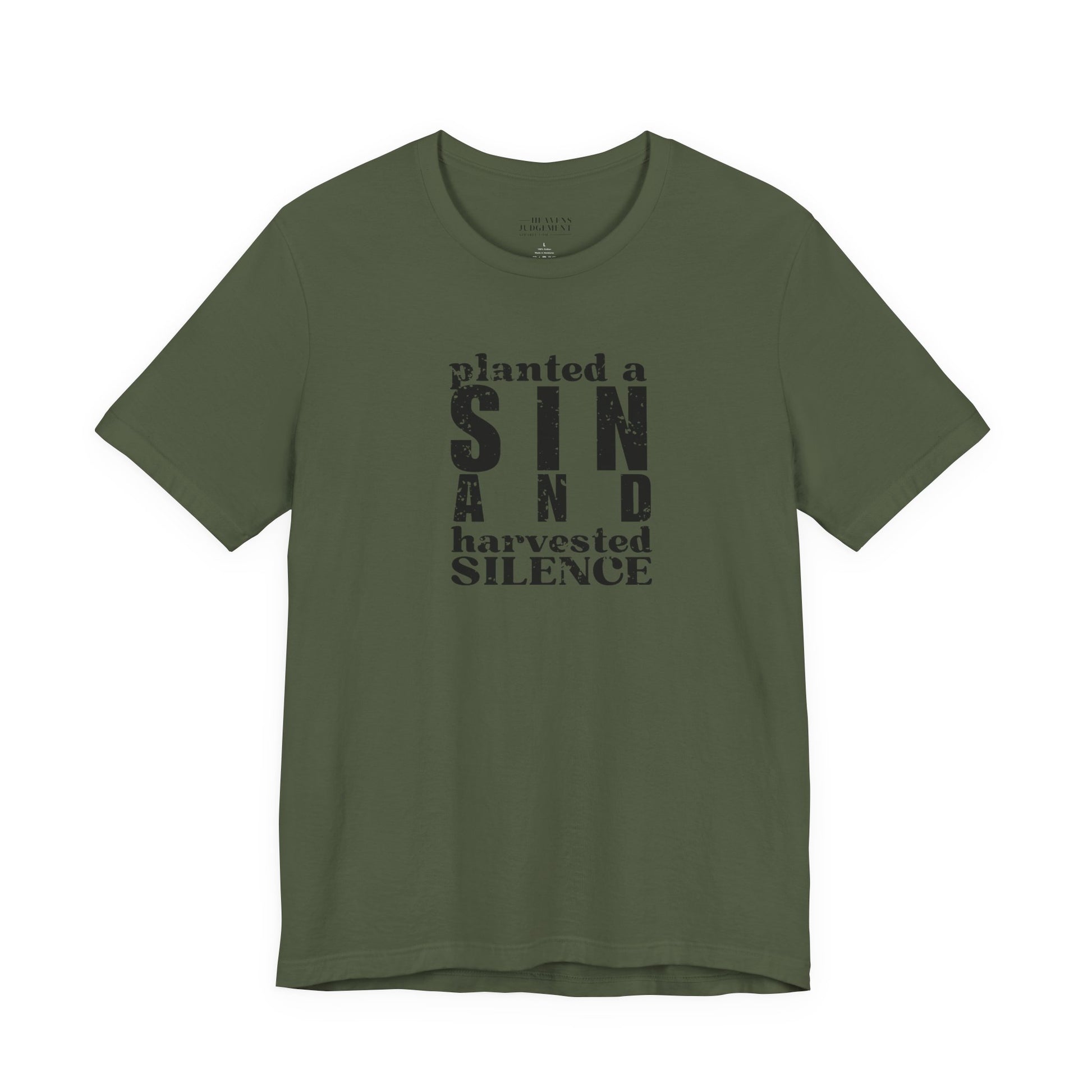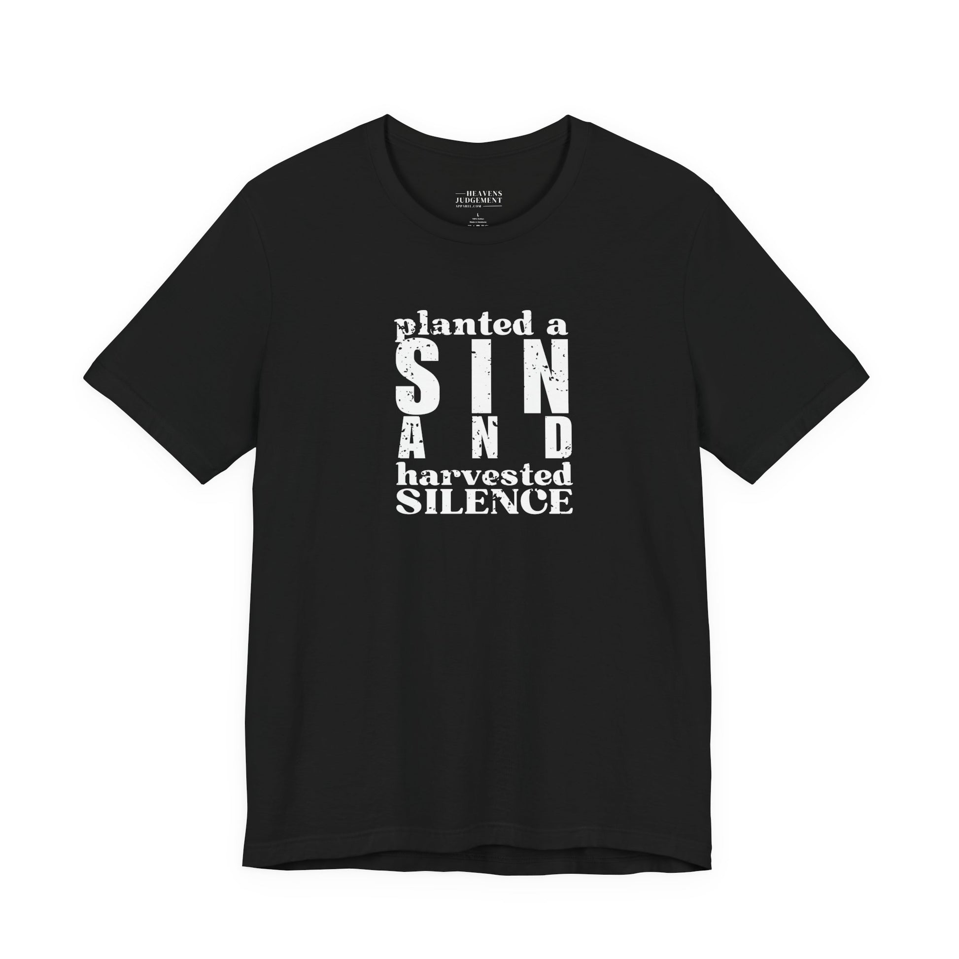 'planted a sin and harvested silence' T-Shirt - Unisex - Distressed Font.