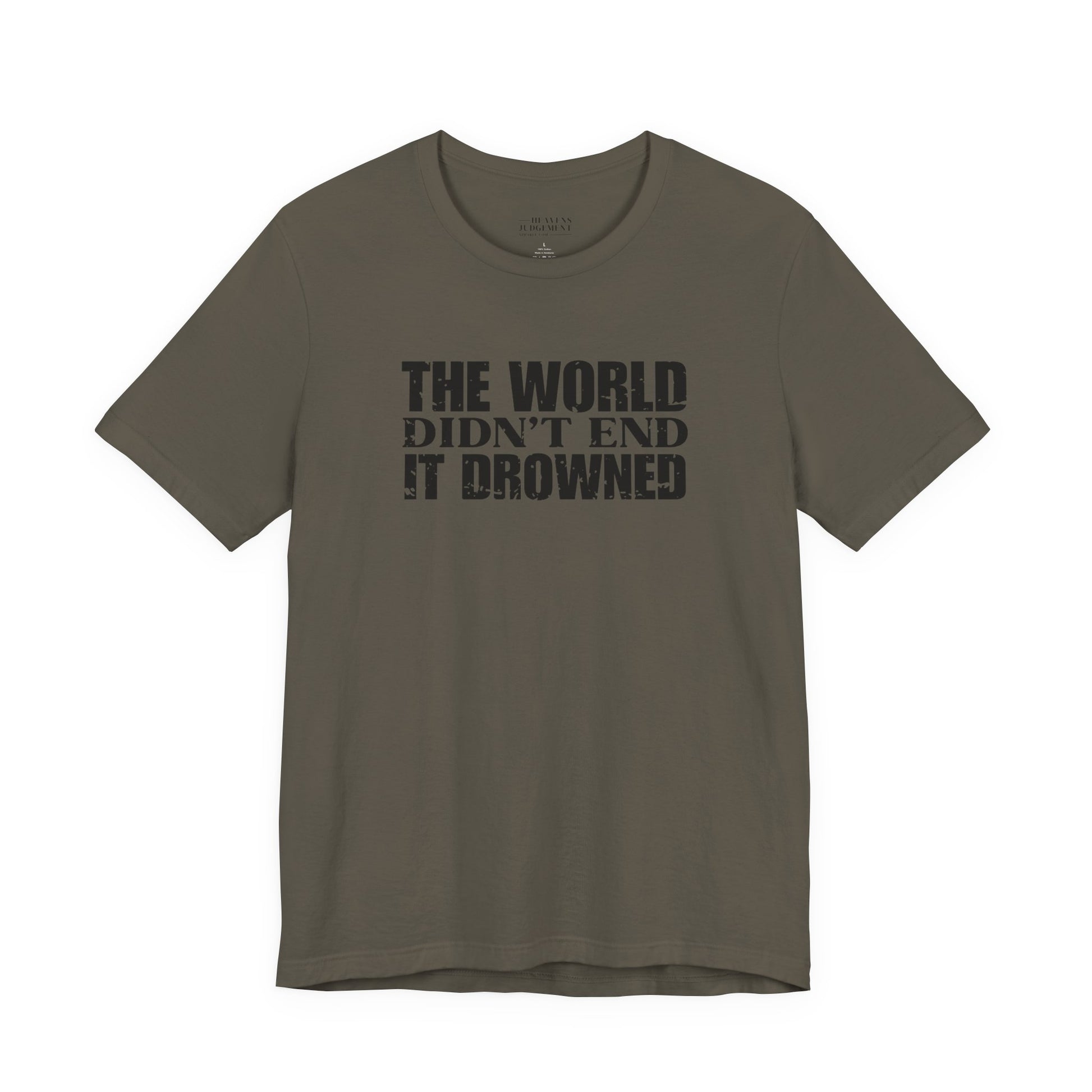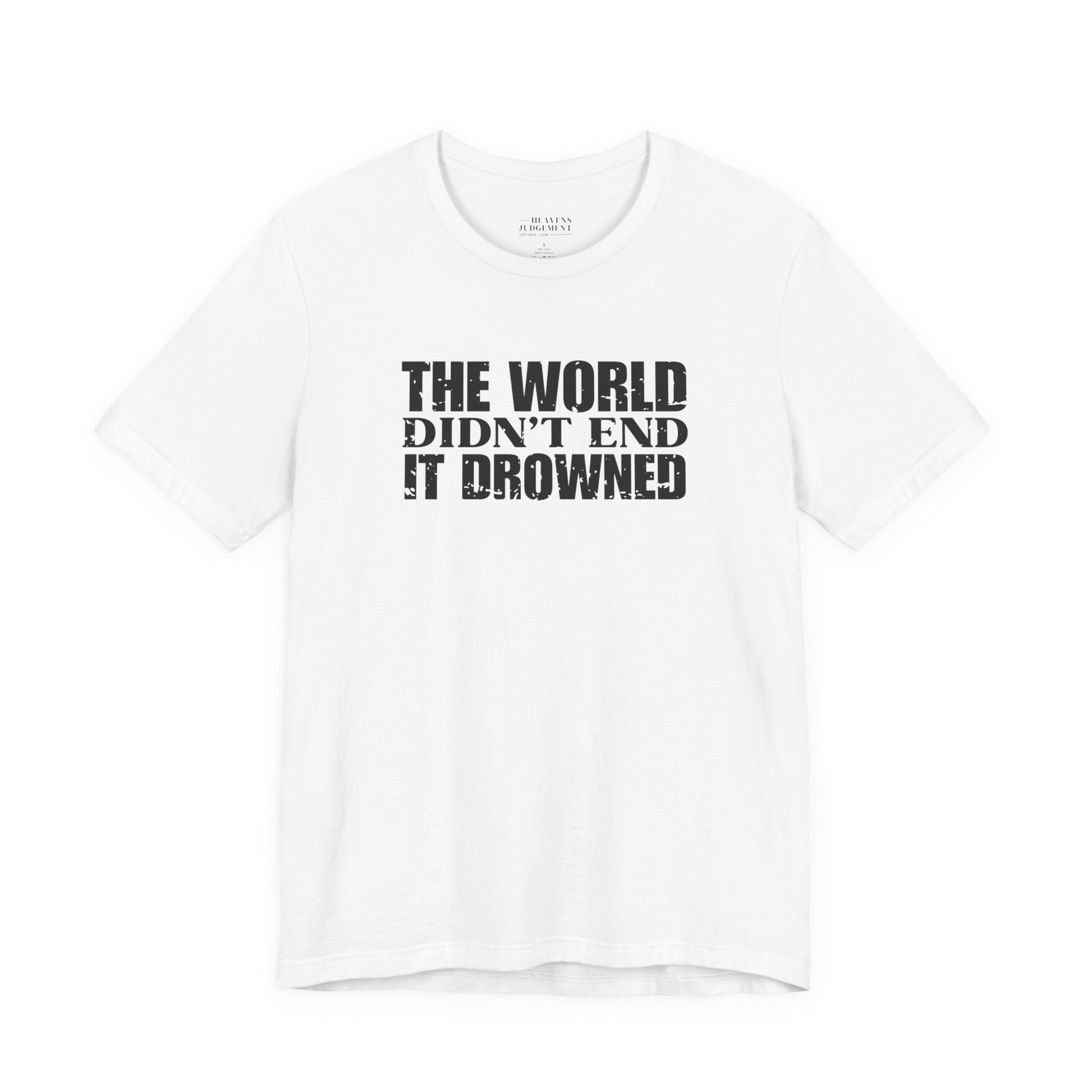 'The world didn’t end. It drowned' T-Shirt - Unisex - Distressed Font.