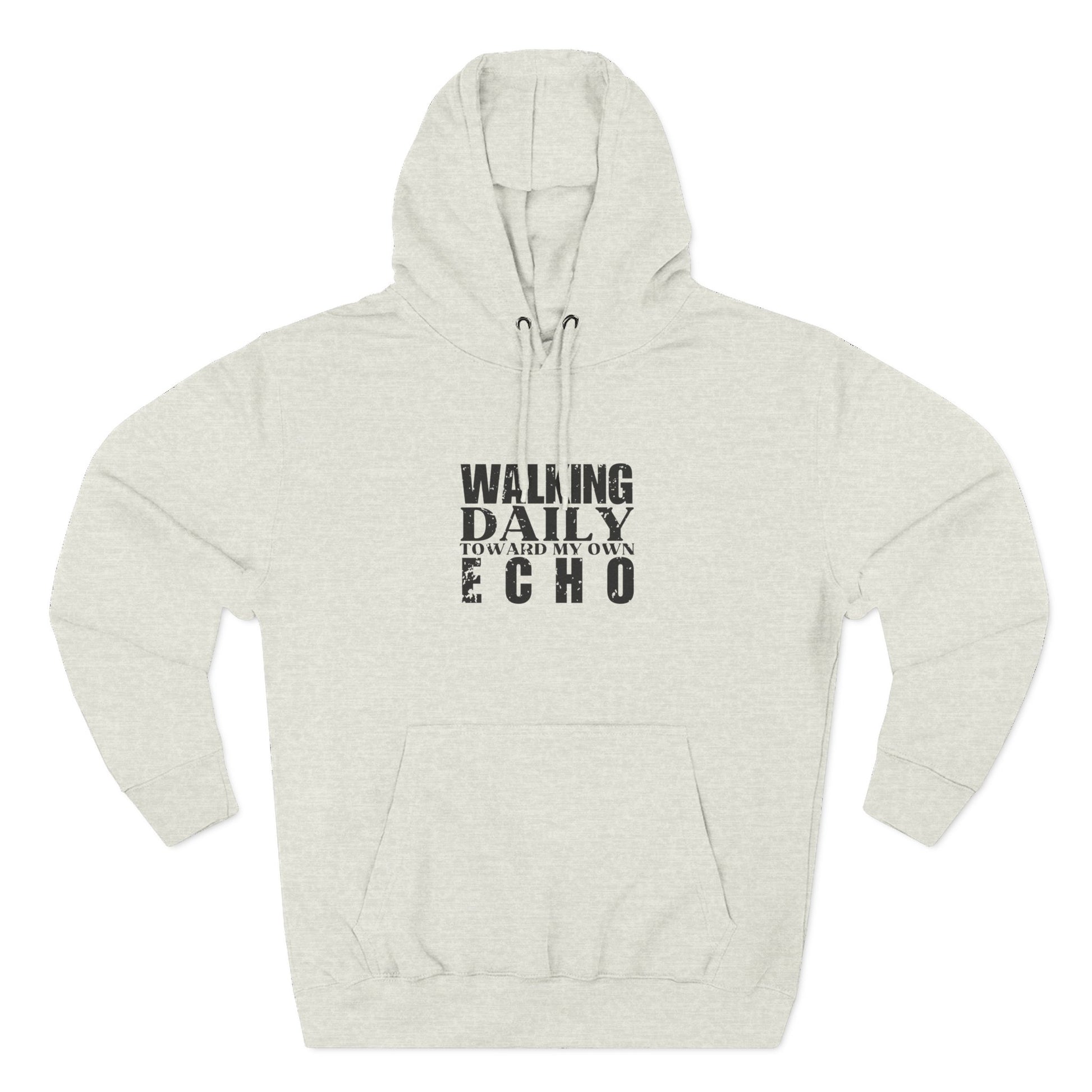 'walking daily toward my own echo' Three-Panel Fleece Hoodie - Unisex - Distressed Font.