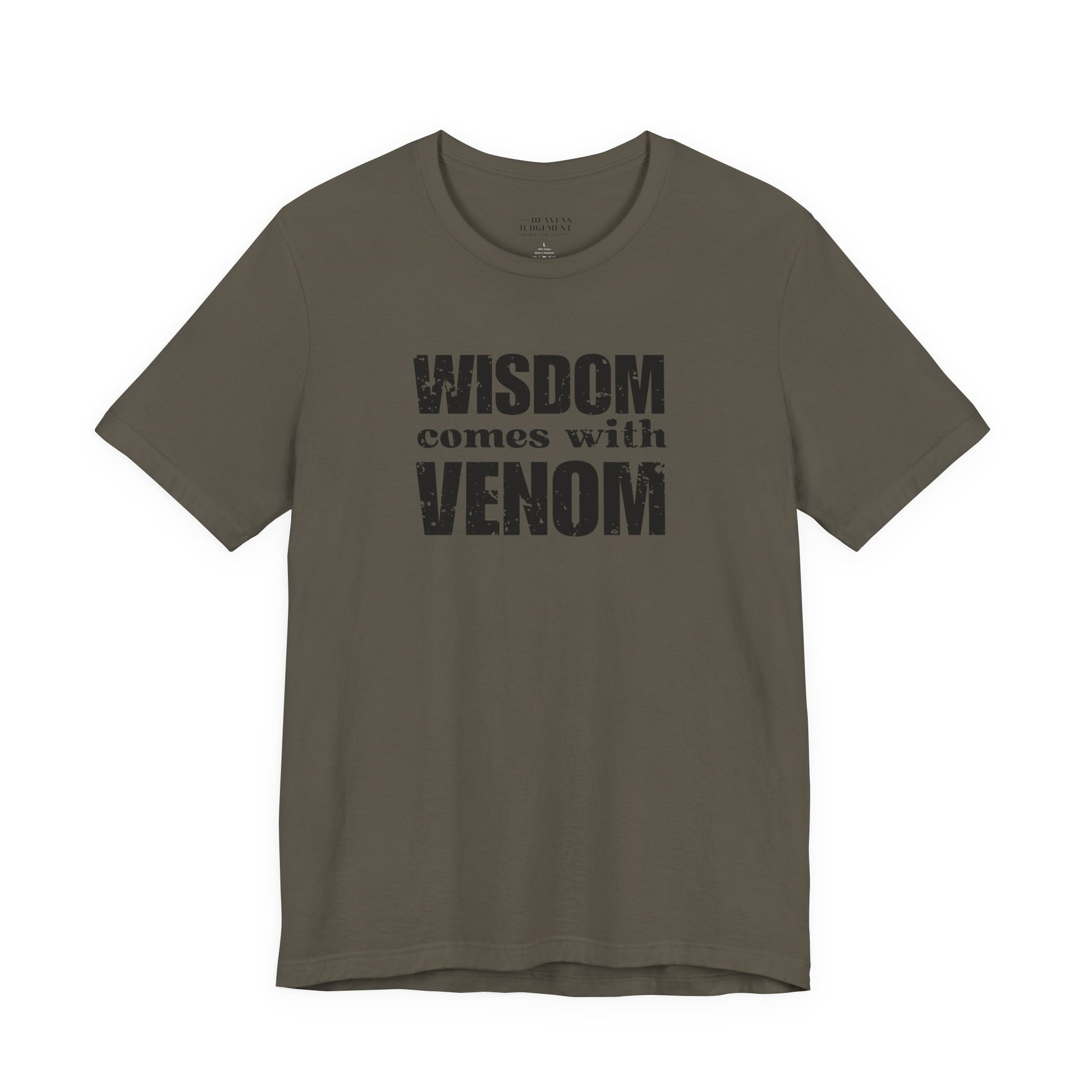 'Wisdom comes with venom' T-Shirt - Unisex - Distressed Font.